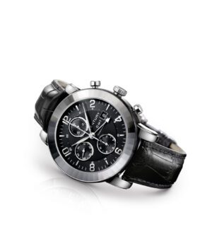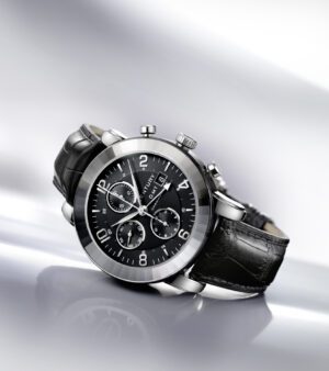 ELEGANCE CHRONOGRAPH GMT bears all the hallmarks of chic contemporary style. With its round case and stylised hour-markers, the lines are deliberately clean, emphasising the watch's modernity. Each aspect has been conceived as the ultimate sign of everyday distinction.